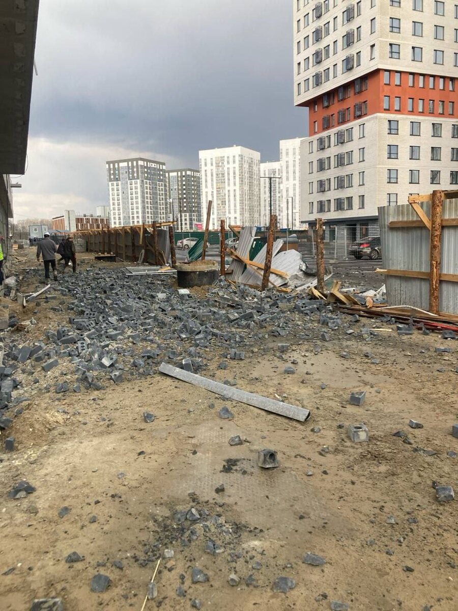 На стройплощадке ЖК «Юнион» рабочего засыпало кирпичами. Мужчина находится в критическом состоянии, у него тяжелые травмы.