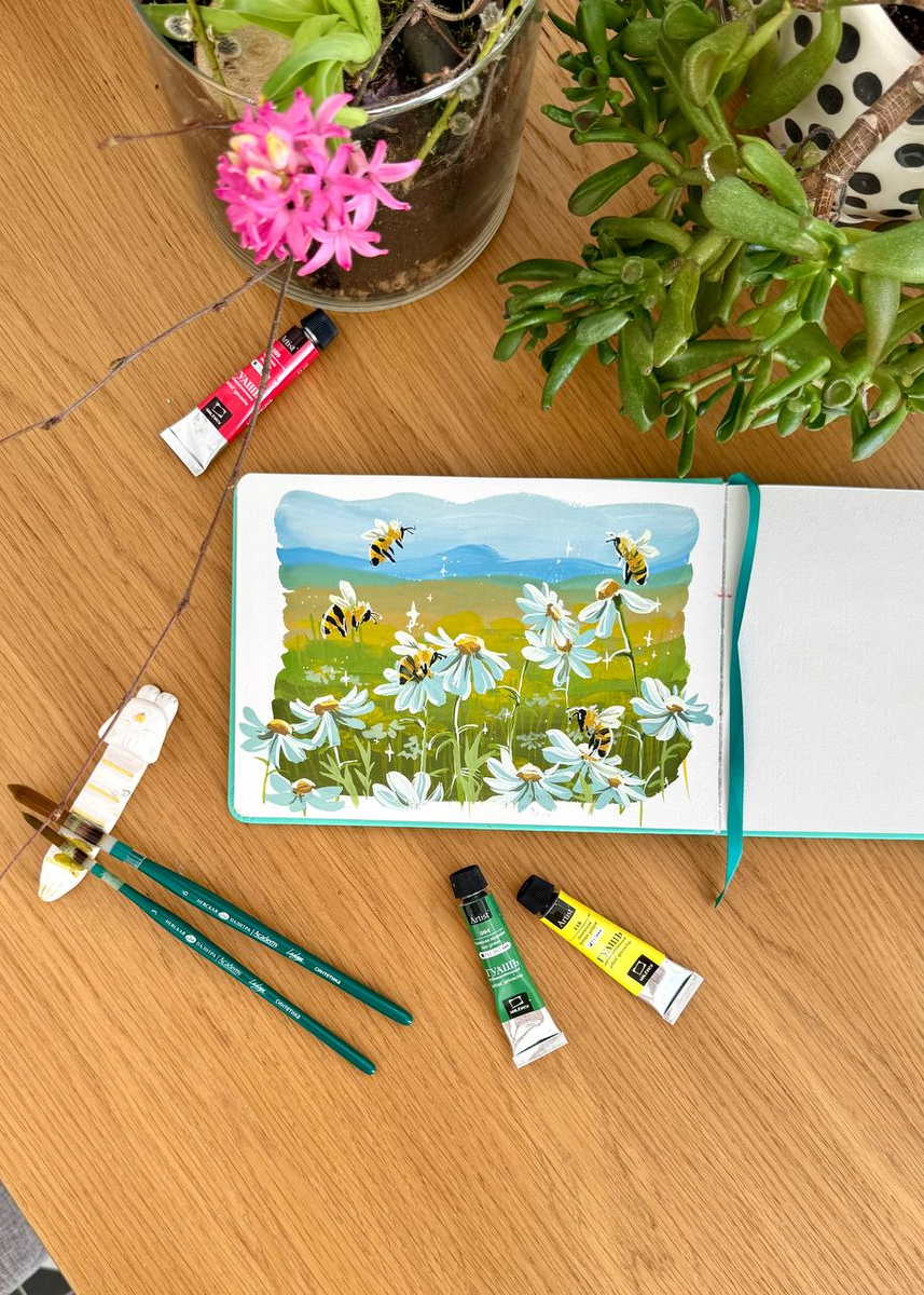 🐝 Начинаем новую творческую неделю! А чтобы сразу создать нужное настроение, мы подготовили для вас очередной выпуск рубрики "Рисуем легко и просто с Dari Art" 🎨 Сегодняшний урок посвящен созданию пейзажа гуашью. Посмотрите, какой летний, солнечный сюжет! Уверены, вам очень понравится рисовать этих чудесных пчёл и яркие ромашки 🌼 Материалов для урока нужно совсем немного: ✓ Набор гуаши ✓ Плотная бумага ✓ Удобная кисть ✓ Палитра ✓ Баночка с водой * Сюжет будем создавать сразу цветом, без карандаша! 📌 Все выпуски рубрики "Рисуем легко и просто с Dari Art" вы найдете в плейлисте ВКонтакте: https://vkvideo.ru/playlist/-72292077_68