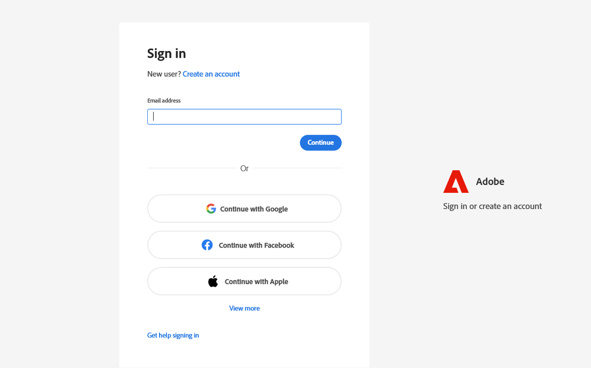 - Создайте Adobe ID (если нет аккаунта) или войдите в существующий.