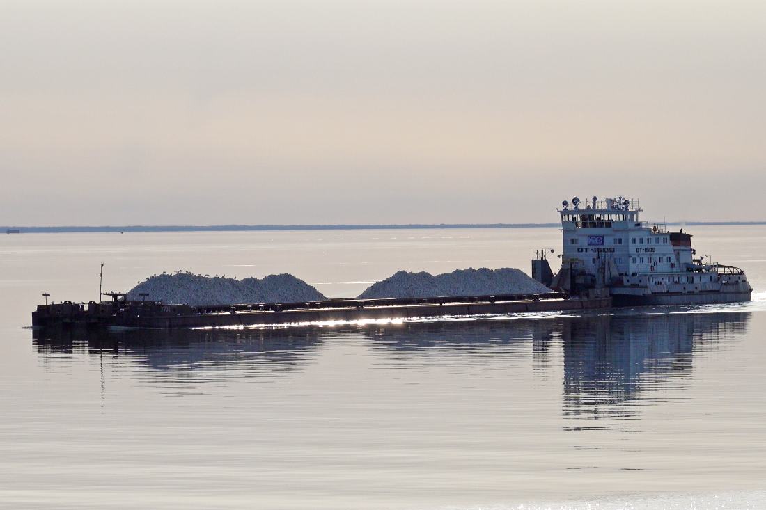 Представляем вашему вниманию уникальные кадры, снятые спокойным вечером 21 августа 2024 года на живописном Белом озере в Вологодской области. В этот вечер нам удалось запечатлеть действующий буксирно-баржевый состав, который является ярким свидетельством долговечности советского судостроения. По озеру уверенно продвигался буксир-толкач «ОТ-1509», который был построен еще в 1985 году, во времена СССР, на знаменитом Невском судостроительном заводе по проекту Р-153. Он толкал перед собой баржу «7702», которая также родом из советской эпохи – ее построили в 1988 году на Белогородокском судостроительно-судоремонтном заводе по проекту 81060. Буксир «ОТ-1509» – это мощное двухвинтовое судно с характерной трехъярусной надстройкой, спроектированное для работы в Волго-Камском бассейне и способное перемещать составы общим весом до 12-15 тысяч тонн. Баржа «7702» представляет собой бункерную гладкопалубную баржу, на момент съемки загруженную неким белым камнем. Удивительной деталью этой встречи ста