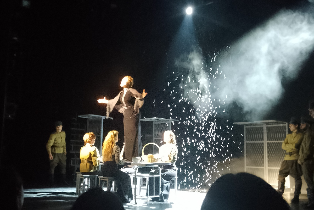 Одна из самых потрясающих сцен спектакля — допрос перед расстрелом — как раз не музыкальная. Не хочу еë пересказывать. Сходите и посмотрите сами, это театр за гранью возможного, описанию уже не подлежащий. Игорь Балалаев и Иван Ожогин творят живую историю, участником которой невольно становишься.