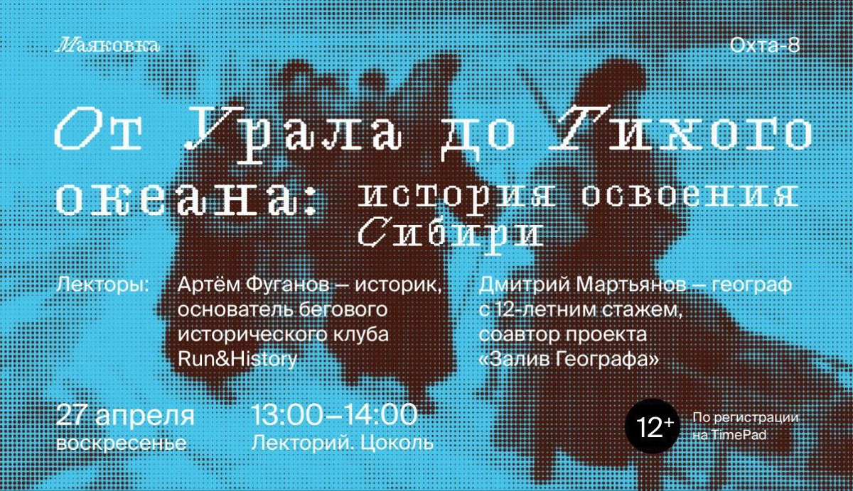К этому всё шло, и вот наконец-то случится. Смотрите, что Охта-8 удумали))) Такого у нас ещё не было: лекция одна, а лекторов — целых два! И очень классных (как по нам). Попросили географа Дмитрия Мартьянова и историка Артёма Фуганова рассказать об истории освоения Сибири и о том, как формировался её географический образ. Покорение Сибири — это сотни лет и тысячи имён, сложный и длительный процесс, в котором легче разобраться, объединив пространство и время. 👯♀️ 27 апреля, воскресенье, 13:00–14:00 Регистрация https://clck.ru/3LVfUg Адрес проведения: Большеохтинский проспект, 8