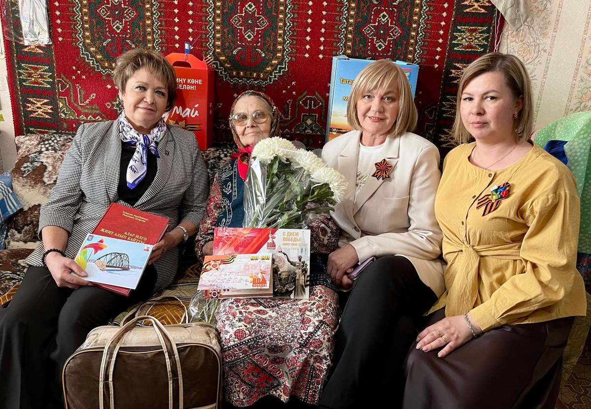 Труженицу тыла Разибу Курбангалину поздравили с 95-летним юбилеем и в преддверии Дня Победы ей вручили продуктовые наборы и памятные открытки от Раиса Республики Татарстан Рустама Минниханова и главы Мензелинского района Айдара Салахова. Разиба Уматкуловна родилась в Муслюмовском районе. В тяжелые военные годы она, как и многие другие, трудилась в колхозе, помогая фронту своим самоотверженным трудом. После войны она создала семью, работала продавцом в магазине, а на пенсию вышла из горторга. Вместе с супругом они воспитали двоих детей, а сегодня их род продолжается в четырех внуках и семи правнуках. С юбилеем Разибу Уматкуловну пришли поздравить заместитель главы города Мензелинска Роза Салдаева, начальник отдела социальной защиты Татьяна Мясникова и директор комплексного центра социального обслуживания населения Лейсан Хусаенова. Они выразили глубокую благодарность ветерану за ее неустанный труд, стойкость и честную жизнь, которая служит ярким примером для молодого поколения.