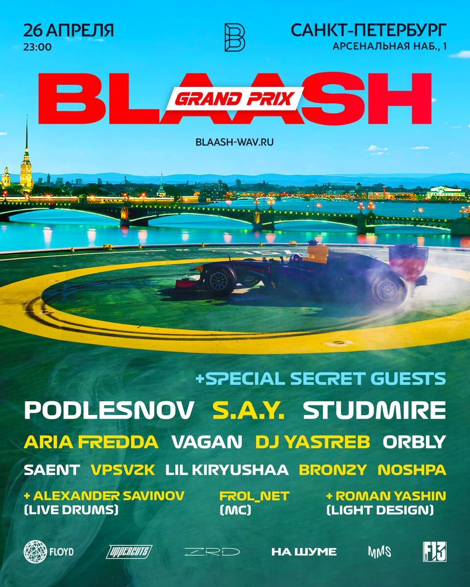BLAASH GRAND PRIX ⛑ 🏎 Питер, уже 26 апреля к нам в полном составе приезжает BLAASH, пригласив с собой много друзей и секретных гостей. 🧨 Вас ждет настоящее шоу с перформансами, слэмами, спецэффектами, авторским лайт и стейдж дизайном. 📺 Весь ивент будет сниматься в рамках YouTube проекта FBR, поэтому советуем прихватить с собой свой самый топовый аутфит. 🎫 Билеты: blaash-wav.ru FC, 18+ 📆 26 апреля, в 22:00🧟♂️🧟🧟♂️ 📍Blank, Санкт-Петербург, Арсенальная наб.1