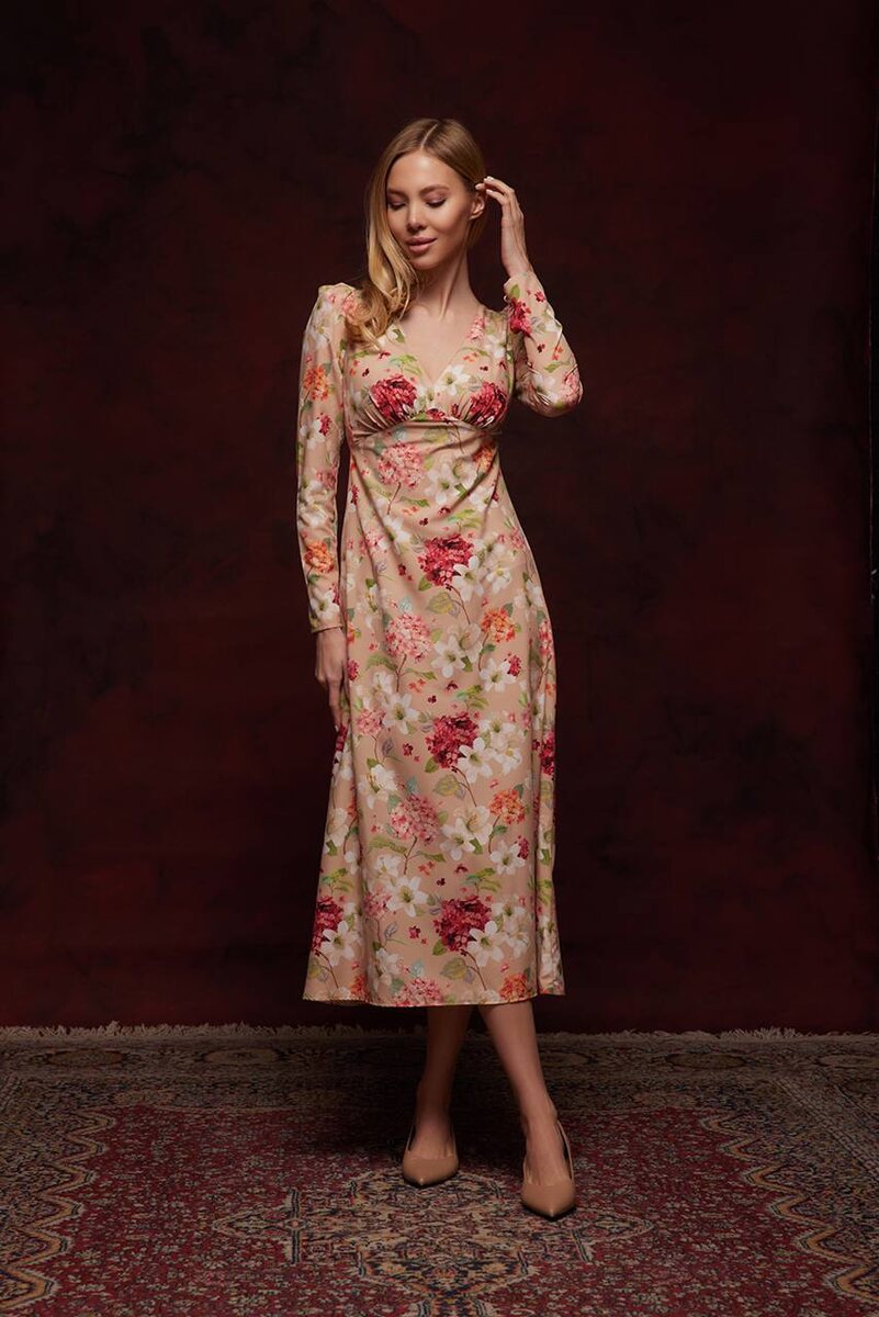 Утонченный образ для встречи со своим джентельменом! Изысканное декольте и нежный цветочный принт подчеркнет вашу женственность!
