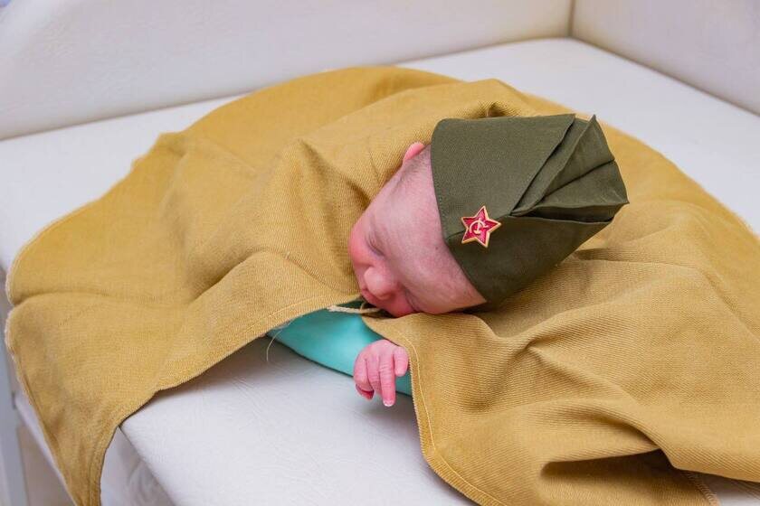 В роддоме новорожденных одели в пилотки со звездочками и плащ-палатки (ФОТО)