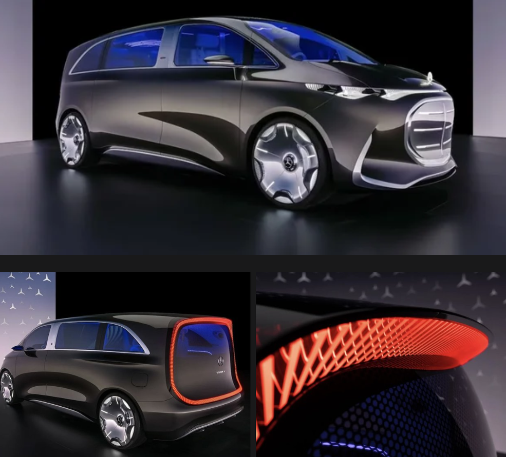 На Шанхайском автосалоне Mercedes-Benz представил Vision V — концептуальный минивэн, который воплощает мечты о роскошном будущем. Этот электрический автомобиль с футуристичным дизайном и передовыми технологиями готов перевернуть представление о комфорте и удобстве. Vision V поражает своим обтекаемым кузовом с вогнутыми панелями и короткими свесами. Его 24-дюймовые колесные диски с светодиодной подсветкой создают ощущение, что автомобиль всегда находится в движении, даже на стоянке. Интерьер Vision V — это симфония белоснежной кожи наппа, хрусталя, натурального дерева и полированного алюминия. Три мультимедийных дисплея, объединенные в одну панель, создают эффект единого пространства. Экраны с «высококлассной графикой» и частотой 120 Гц обеспечивают непревзойденное качество изображения. Задняя лаундж-зона оснащена 65-дюймовым 4K телевизором, который поддерживает запуск ТВ-приложений, фильмов, сериалов и игр через PlayStation или Xbox. Семь проекторов выводят изображение на боковые стек