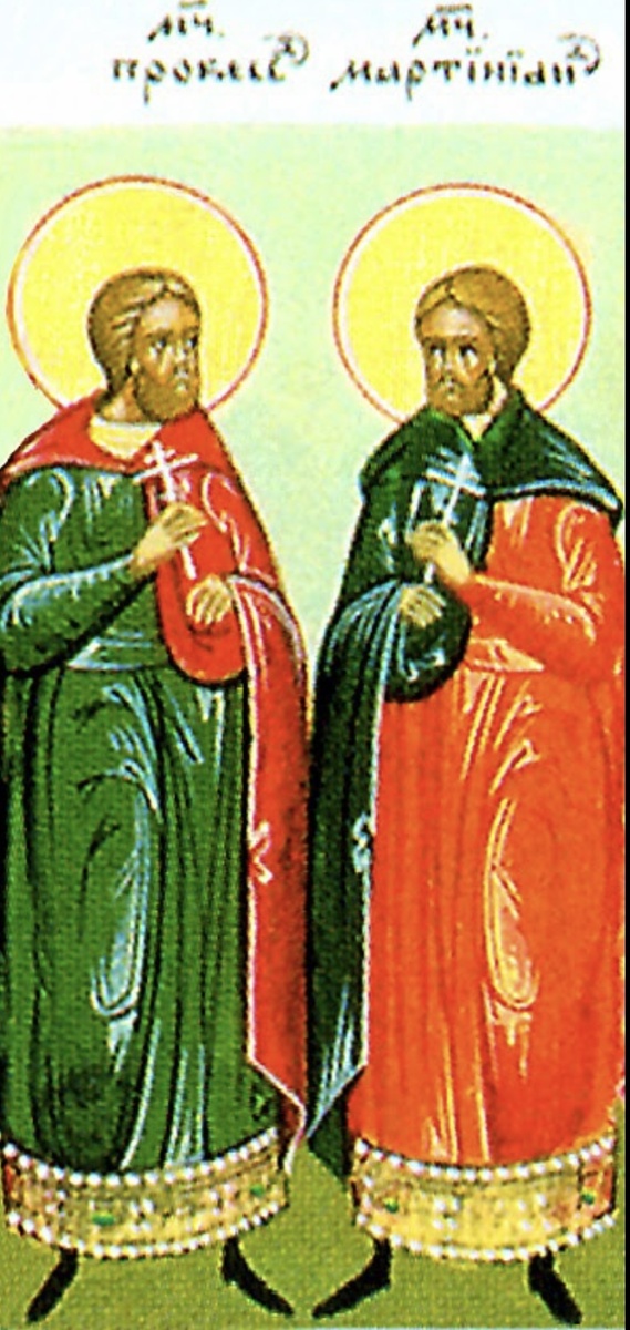 24 апреля православные христиане вспоминают мучеников Прокесса и Мартиниана. Когда-то они были язычниками и служили стражами в Мамертинской тюрьме Рима. В там заточении содержались христиане, которые считались государственными преступниками. Прокесс и Мартиниан наблюдали за заключенными, слушали их проповеди невольно и постепенно пришли к познанию истинной веры. Как-то раз в эту темницу привели апостола Петра. В то время Прокесс и Мартиниан уже уверовали во Спасителя, приняли от апостола крещение и отпустили его из заточения. Начальник тюрьмы Павлин узнал об этом и приказал стражам принести жертву языческим идолам. Однако святые безбоязненно исповедали веру во Христа и оплевали золотую статую Юпитера. Павлин приказал бить мучеников по устам, а после отправил их на пытки: их били железными прутьями, опаляли огнем, а после бросили в темницу. Некая благочестивая женщина Люцина проникла к мученикам в темницу, чтобы утешить и ободрить их. Павлина же вскоре постигло Божие наказание – он осле