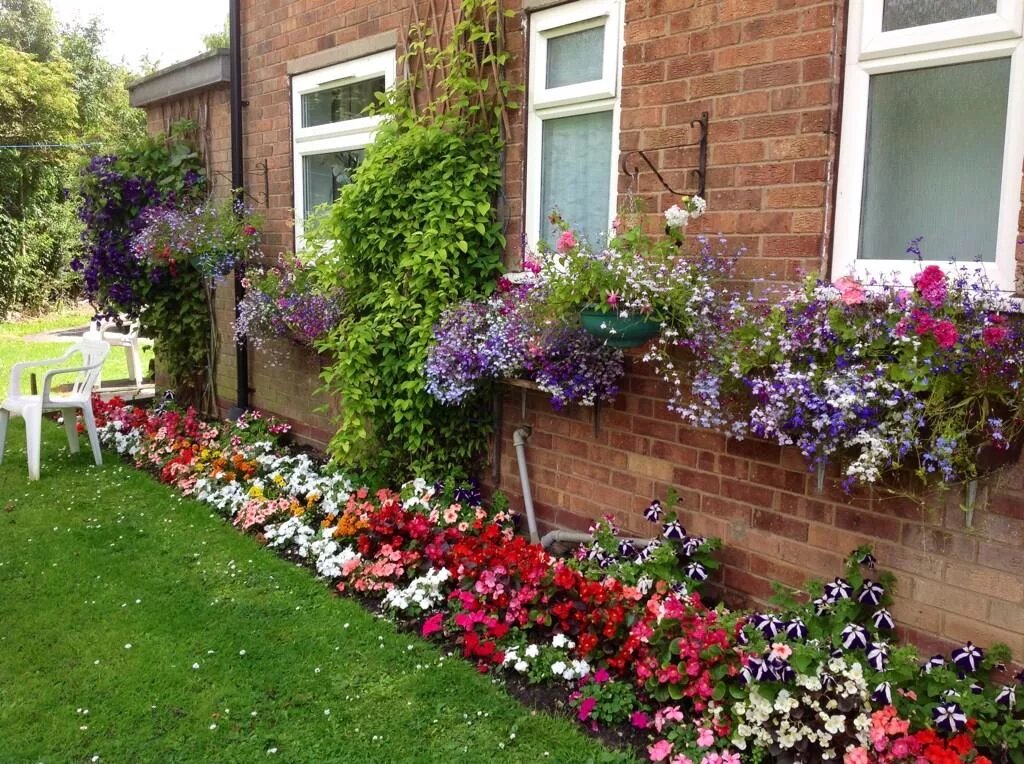 - Бархатистые лепестки анютиных глазок рядом с гладкими листами бегонии — тактильный контраст, который приятно даже просто видеть.
