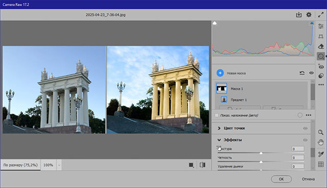 В модуле (фильтре) Camera Raw имеется очень мощный инструментарий, приблизивший его возможности к возможностям Photoshop: теперь работа там с масками напоминает работу с корректирующими слоями в самом фотошопе.