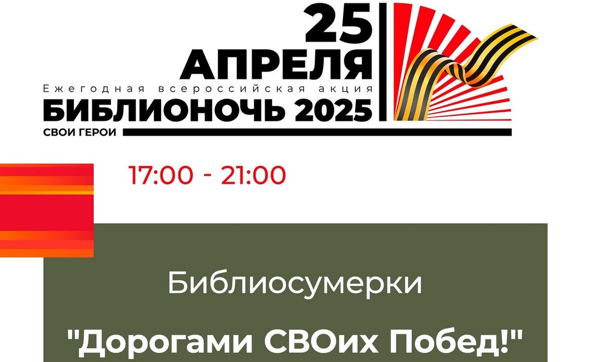В модельной библиотеке № 32 имени Г.Н. Троепольского Ленинского района!» 25 апреля с 17:00 до 21:00 пройдет Всероссийская акция библиосумерки «Дорогами СВОих Побед!». Участники акции пройдут Дорогами воинской Славы России, от 1945 к 2025-му году, от защитника-героя Великой Отечественной войны к воину-герою Специальной военной операции. Организаторы площадки разработали эксклюзивное обучение в виртуальной школе разведчиков по овладению навыками шифрограмм и чтению виртуальных карт боевых действий. В библиотеке будет предоставлена уникальная возможность перевоплощения в Нафаню и Морок от ZaVOZ. На курсе молодого бойца предложат освоить практические кейсы: первая помощь, тактическая медицина, разборка-сборка автомата АК-47, рацион питания бойца, «Сеть для наших пацанов». Каждый сможет проверить свою меткость в стрельбе из пистолетов в электронном тире. Кинохроника, Флешмоб «Голос времени», концертные бригады, библиотечный десант – станут связующим звеном между прошлым и будущим. Юные учас