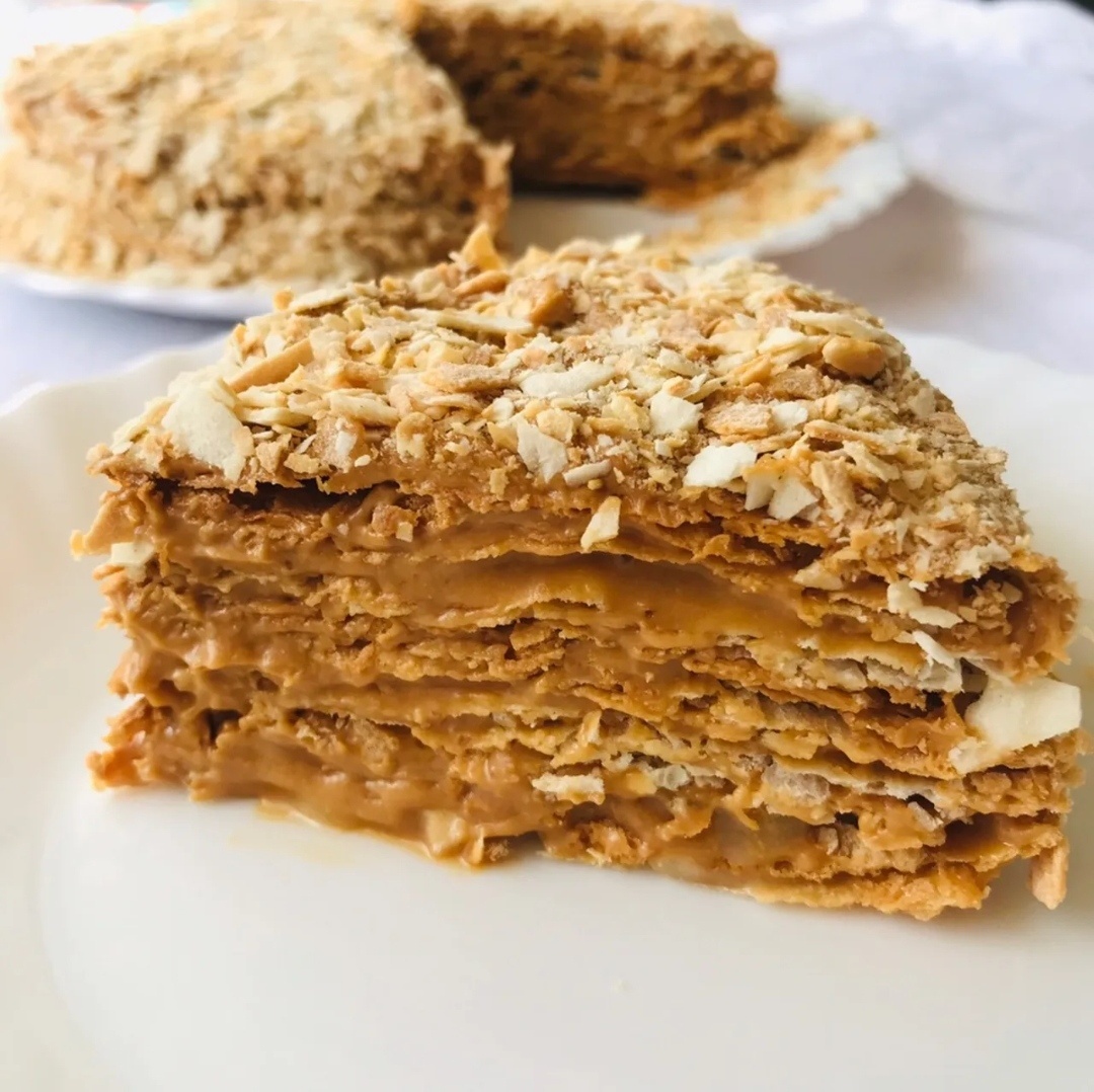 Всем привет 👋 Есть у меня здесь любители «наполеона»?😊 Рецепт для ленивых 🙈 Торт из лаваша 😉 Изюминка этого рецепта в том, что хрустящие листы лаваша перед нанесением крема мы пропитаем сладким молоком, уваренным с сахаром. Такой кулинарный приём гарантирует, что торт пропитается всего за несколько часов. ✅ Рецепт приготовления Из листов лаваша вырезать нужную форму. Поставить в духовку и подсушить лаваш до хруста (минут 10). Обрезки тоже подсушите, они понадобятся для засыпки.  Сделать крем, для этого размягчённое сливочное масло смешать со сгущёнкой.  Молоко проварить с сахаром в течение 20 минут.  Собираем торт: каждый корж смазать уваренным с сахаром молоком, затем нанести крем и равномерно распределить. Коржи сложить друг на друга. Обрезки измельчить в крошку и посыпать ими готовый торт. Отправить торт в холодильник на ночь. Приятного чаепития! 🤗 Если Вам понравился рецепт - поставьте Класс, поделитесь в соцс