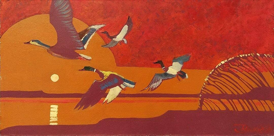 Птицы в работах Русских Вадима Валерьевича К своему узнаваемому стилю Вадим Русских пришёл в ходе творческого эксперимента. Работая над серией картин, вдохновлённых армейскими воспоминаниями, он намеренно упростил фон, сделав его более графичным и плоским — и именно это решение стало поворотным. Позже он начал применять эту технику и в других жанрах — от портрета до пейзажа. Однако, как признаётся сам художник, каждый раз подход к упрощению пространства определяется заново. В последние годы Вадим активно развивает себя в пейзажной и анималистической живописи.