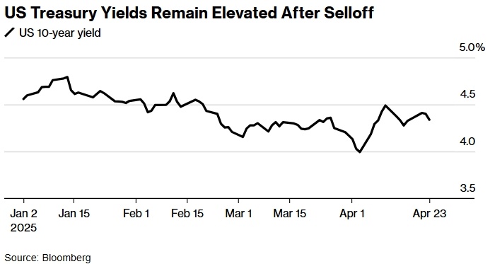 Недавняя волатильность создала возможности для увеличения инвестиций для терпеливых инвесторов Pacific Investment Management Company (PIMCO) начинает рассматривать казначейские облигации как перспективный инструмент после резкого падения их стоимости, вызванного опасениями по поводу политики президента США Дональда Трампа. Инвесторы опасаются, что иностранные инвесторы могут сократить свои вложения в американские активы, но не считают, что это приведёт к значительному снижению роста экономики, как сообщил Мохит Миттал, главный инвестиционный директор PIMCO по основным стратегиям, в интервью Bloomberg TV. Учитывая, что экономика США, вероятно, будет замедляться в долгосрочной перспективе, американские облигации могут стать привлекательным инструментом для инвестиций, добавил он. Доходность казначейских облигаций США остается высокой после распродажи. Источник: Bloomberg Заявление PIMCO может свидетельствовать о том, что некоторые инвесторы начинают видеть, что худшее уже позади, после т