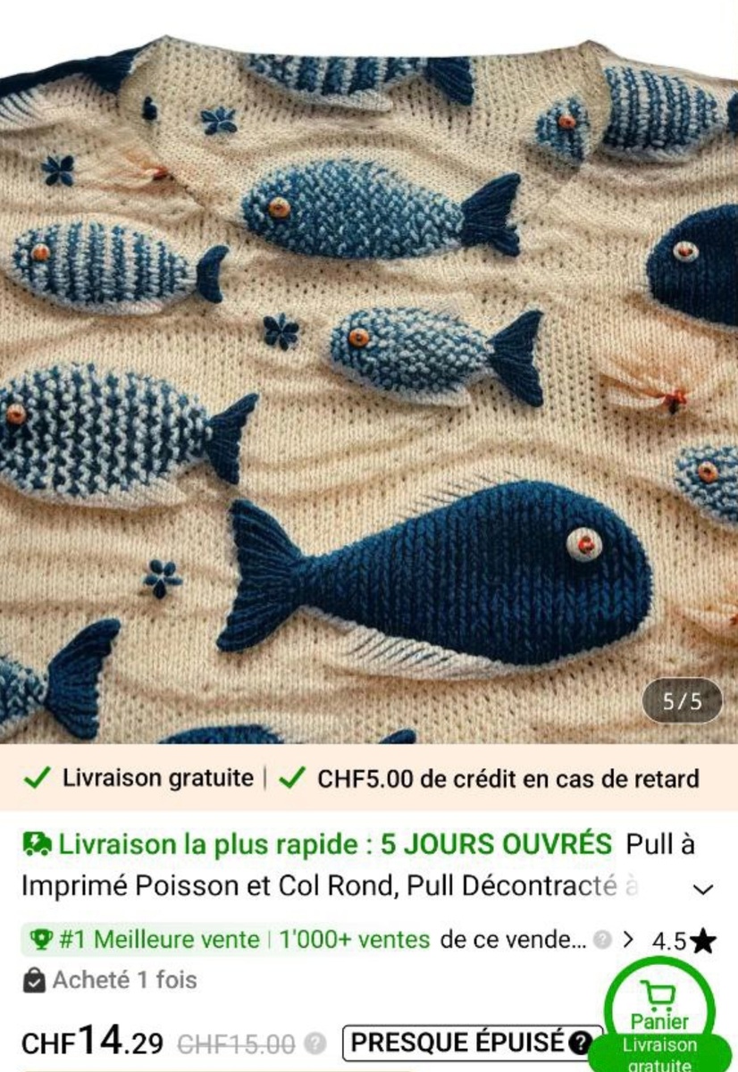 Картина маслом: Европа охвачена новым повальным увлечением — теперь там носят исключительно «вязаные» изделия! Только вот маленькое уточнение: ни одна бабушка даже пальцем не пошевелила ради этих шедевров рукоделия. Потому что петли и узоры – нарисованы, вернее наштампованы, при чем на чистейшем синтетическом полотне. «Ах, какая тёплая кофточка!» — восхищается дама, забывая, что изделие прохладнее утренней росы. Но главное ведь видимость: покажись в таком чудо-произведении на улице Парижа — сразу почувствуешь себя настоящим эстетом, пусть даже ноги замерзли до синевы. Дизайнерская хитрость века: вязаные мечты сверху, синтетика внутри. Ну кто ещё, кроме Европы, способен убедить мир, что джемпер из полиэстера — это новый тренд ручной работы?! Моя дочь легко поддалась на эту провокацию и заказала чудесный "рыбный" джемпер: мол, «ты, мама, такой ведь не свяжешь!?» А она, плутовка, знает, что я очень люблю вязать для нее. Я вздохнула и смиренно признала поражение — действительно, тако