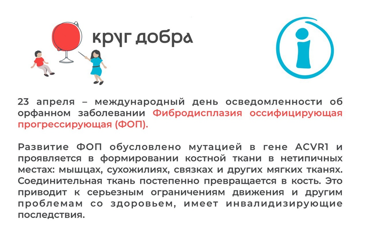 23 апреля – международный день осведомленности об орфанном заболевании Фибродисплазия оссифицирующая прогрессирующая (ФОП)