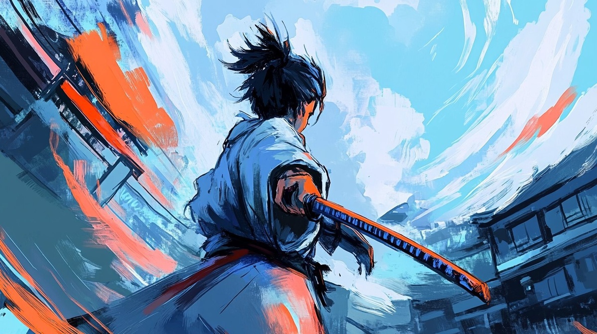 Создано на основе запроса: , a lone samurai standing in a dramatic pose, dynamic anime style, expressive brush strokes, vivid lighting, bold colors, cinematic composition, intense expression, traditional Japanese town in the background, wind blowing his clothes and hair, strong blue and orange highlights, stylized motion effects, painted illustration --- Автоперевод: , одинокий самурай, стоящий в драматической позе, динамичном стиле аниме, выразительных мазках кисти, ярком освещении, смелых цветах, кинематографической композиции, интенсивном выражении, традиционном японском городе на заднем плане, ветром, дубившем его одежду и волосы, синие синие и оранжевые моменты, стилизованные эффекты движения, окрашенная иллюстрация, наносит Как тебе иллюстрация? 🤔 https://dzen.ru/id/65c0c65c86e4f837c27b24d7 #ИИ #AI #нейросеть #midjourney #art