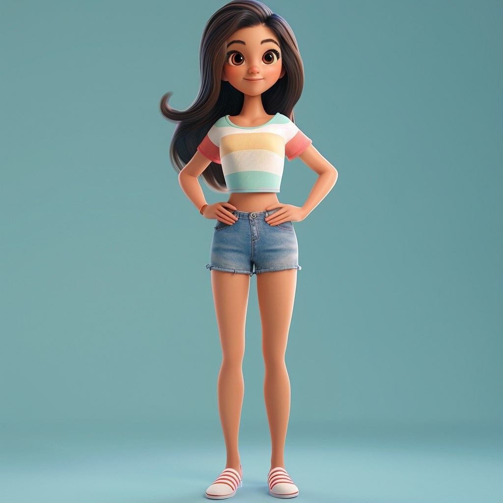 Создано на основе запроса: 3D cartoon character turnaround, full body, stylized female character with exaggerated proportions (slim waist, long legs, big eyes, small nose), clean Disney-Pixar style, soft lighting, high detail, glossy textures, pastel background, character wearing modern casual outfit, jeans or shorts, striped or colorful top, friendly expression, charming and youthful look --- Автоперевод: Трехмерный мультипликационный персонаж. Обработка персонажа, всего тела, стилизованного женского персонажа с преувеличенными пропорциями (тонкая талия, длинные ноги, большие глаза, маленький нос), чистый стиль Диснея-Пиксар, мягкое освещение, высокие детали, глянцевые текстуры, пастельный фон, характер в современном повседневном наряде, джинсы или шорты, полосатые или красочные вершины, дружелюбное выражение и молодо Классно выглядит? 🤔 https://dzen.ru/id/65c0c65c86e4f837c27b24d7 #ИИ #AI #нейросеть #midjourney #art