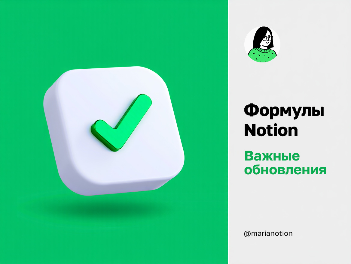 В этой статье рассказываю об обновлениях формул Notion 2.0 и делюсь готовым кодом для ваших баз данных Ноушен. ❌ Было: formatDate(date, format) ✅ Стало: formatDate(date, format, timezone?) 🔗 Справка: formatDate Теперь в функцию можно передать часовой пояс, чтобы скорректировать время. Часовой пояс можно вводить в разных форматах (подробнее см. в справочнике). formatDate(prop("Дата"), "HH:mm", "Europe/Moscow") formatDate(prop("Дата"), "HH:mm", "UTC+3") ❌ Было: round(value) ✅ Стало: round(value, precision?) 🔗 Справка: round Теперь функция позволяет регулировать точность округления; запись для округления процентов (подробнее см. в справочнике) стала проще. Функции ceil и floor по-прежнему округляют только до целого. round(prop("Число"), 2) ❌ Было: sort(list) ✅ Стало: sort(list, expression?) 🔗 Справка: sort Мегаполезный апдейт. Раньше сортировать массивы можно было исключительно по значению по возрастанию. Теперь можно указать, по какому полю следует осуществлять сортировку. Реализация,
