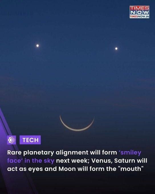 Послезавтра, 25 апреля, над нашей планетой появится гигантский эмодзи: Луна, Венера и Сатурн выстроятся в парад, создав космическую улыбку.