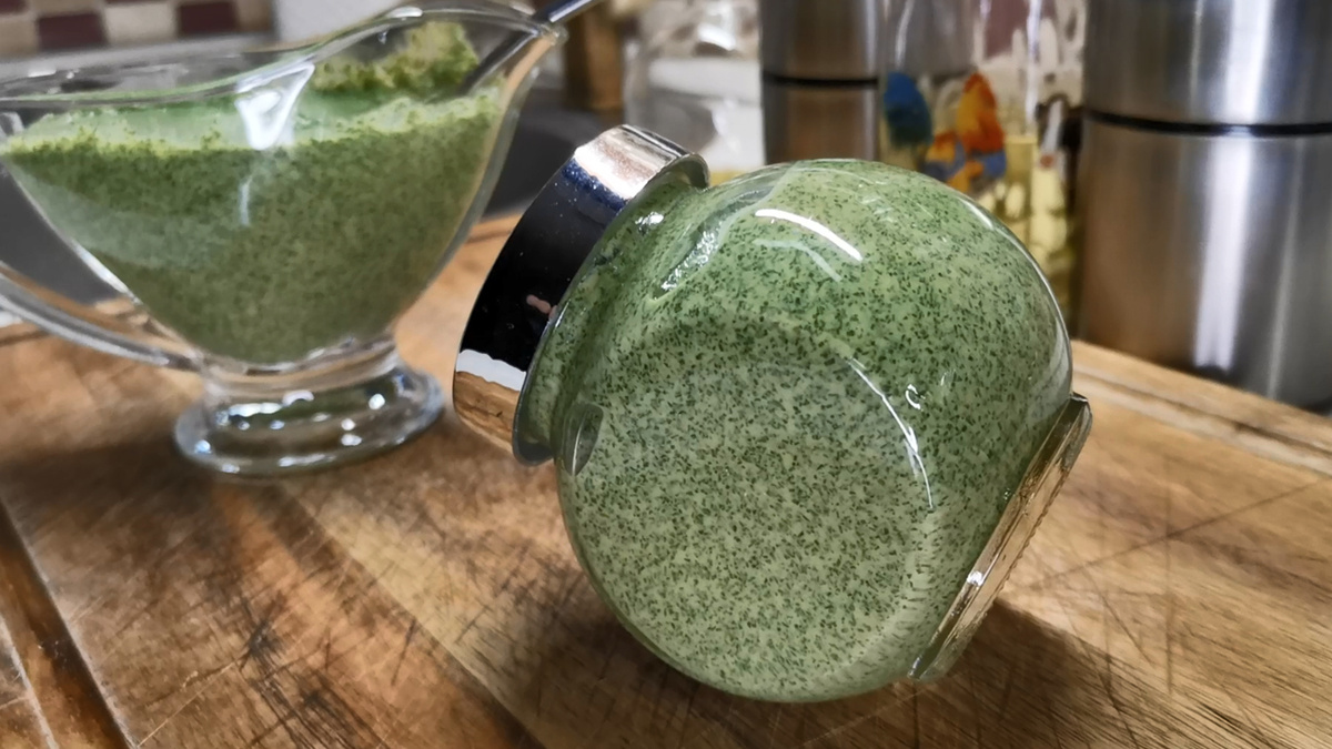 И самое последнее - растительное масло. Любое. Вливаем и включаем на перемалывание. Всё! Дольше было рассказать и показать. Реально 5 минут и соус приготовлен.