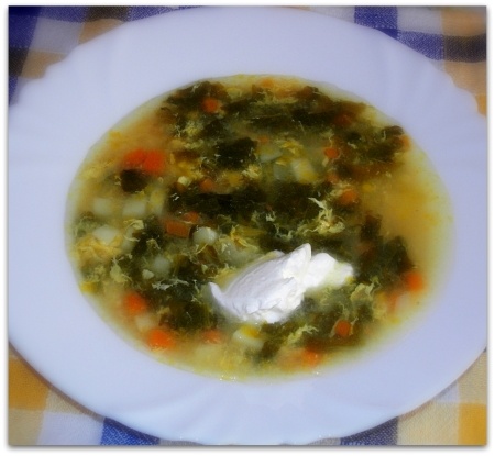 Сегодня предлагаю простой рецепт лёгкого, но сытного весеннего супчика. Эти щи я всегда готовлю без мяса, в них оно мне совсем лишнее, но вы ориентируйтесь на свой вкус. - 2 литра воды или куриного бульона - 6-7 картофелин - 1 головка репчатого лука - 1 морковь - 200-300г щавеля - 2-3 сырых куриных яйца - Соль - Перец чёрный свежемолотый - Сметана Лук и морковь очистить, измельчить удобным способом и пассеровать до мягкости. Бульон/воду довести до кипения, посолить по вкусу и положить в него очищенный и порезанный кубиками картофель. Варить почти до полной готовности, затем добавить пассеровку из лука и моркови, а тек же свежемолотый чёрный перец. Как только суп закипит опустить в него предварительно вымытый и порезанный полосками щавель. Снова довести до кипения и, при постоянном помешивании, влить предварительно взбитые вилкой яйца. Как только суп закипит снова, сразу снять с огня. Подавать со сметаной! Ещё по теме: