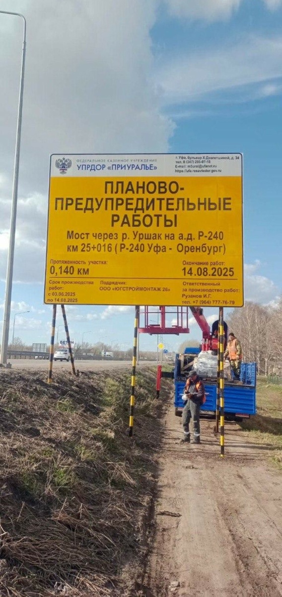 В районе Булгаково, на мосту через реку Уршак, расположенном на трассе Р-240 Уфа — Оренбург, установили информационные щиты. Они содержат сведения о сроках проведения ремонтных работ, протяжённости участка, а также о заказчике и подрядной организации, которая будет заниматься ремонтом этого искусственного сооружения. Ремонт моста, который был признан аварийным, планируется начать 3 июня 2025 года. Завершение работ запланировано на середину августа. Об этом 22 апреля на брифинге на телеканале БСТ сообщила министр транспорта и дорожного хозяйства Республики Башкортостан Любовь Минакова. Основные работы на мосту будут проводиться в период наименьшей загруженности — в июне и июле. Подрядчик будет работать круглосуточно, без выходных и праздников, в две смены. В процессе ремонта мост будет частично перекрыт. Для водителей будут доступны три полосы движения, где будет организовано регулирование потоков с помощью светофоров. При этом движение по средней полосе будет реверсивным. Это означает,