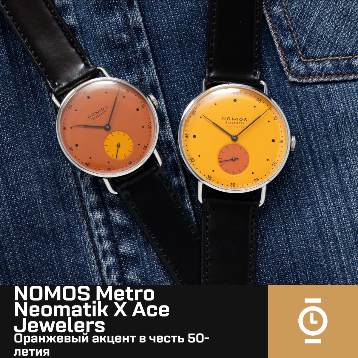 NOMOS Metro Neomatik Х Ace Jewelers: оранжевый акцент в честь 50-летия #новость_WD Ace Jewelers — амстердамский часовой и ювелирный ритейлер. В честь своего 50-летия он объединился с NOMOS Glashütte для создания двух лимитированных версий Metro Neomatik с яркими оранжевыми циферблатами, отсылающими к национальному цвету Нидерландов. Часы выпущены в размерах 35 и 38,5 мм и оснащены ультратонким автоматическим калибром DUW 3001 толщиной 3,2 мм с запасом хода до 43 часов. У версии 38,5 мм — светло-оранжевый циферблат с тёмно-оранжевым субциферблатом секунд, у 35 мм цвета инвертированы. Тонкие стрелки напоминают силуэт Эмпайр-стейт-билдинг, подчёркивая графичность дизайна. Полированные корпуса с проволочными ушками и куполообразным сапфировым стеклом дополнены прозрачной задней крышкой. Каждая версия ограничена 50 экземплярами и продаётся эксклюзивно в амстердамском бутике Ace Jewelers. Цены — 3 400 и 3 540 евро соответственно. 🔶 Переходи в чат, выскажи свое мнение! 🔶 Модерат