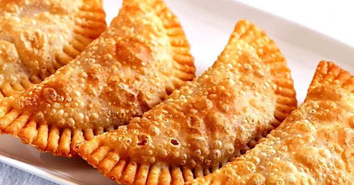3. Формовка: Разделить тесто на небольшие шарики размером с теннисный мяч. Каждый шар раскатать тонко, положить столовую ложку начинки и аккуратно защипнуть края, формируя полумесяц.