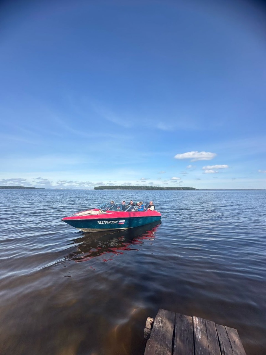 Первая экскурсия в этом году на катере в Нилову Пустынь..