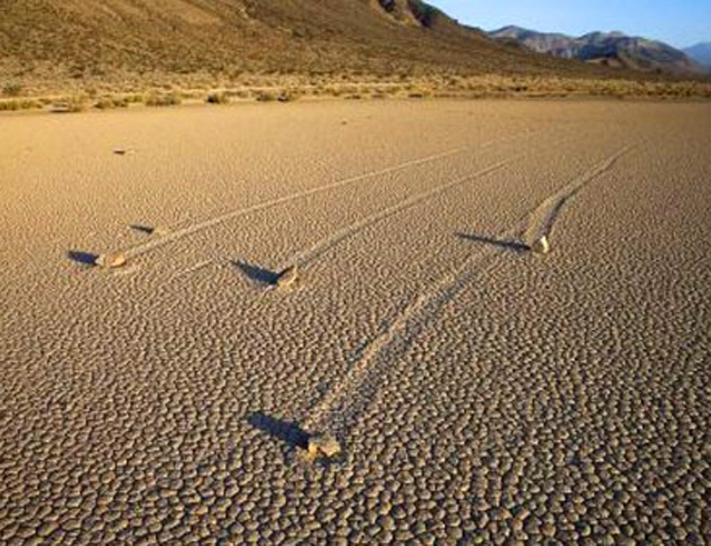 Почти целое столетие учёные не могли разгадать тайну Долины Смерти. Заключалась она в том, что камни на дне высохшего озера Рейстрек-Плайя в Калифорнии перемещаются сами по себе. Это происходит очень медленно, поэтому люди замечают движение только по оставленным следам-колеям тянущимися за камнями на многие сотни метров. Индейцы, жившие в этих краях, приписывали подобные явления действию потусторонних сил и старались не приближаться к озеру. Первопроходцы также не проявляли интереса к сухим озёрам и движущимся камням. Однако в начале XX века этим феноменом заинтересовались геологи и принялись изучать его более тщательно. Около камней устанавливали специальные знаки — столбики. Вокруг них устанавливались ограждения. Также ученые использовали собственные камни, за которыми велось еще более тщательное и регулярное наблюдение. Версии насчет движущихся камней рассматривались самые различные. Долгое время предполагалось, что причиной могли быть сильные ветры, которые в долине достигали ураг