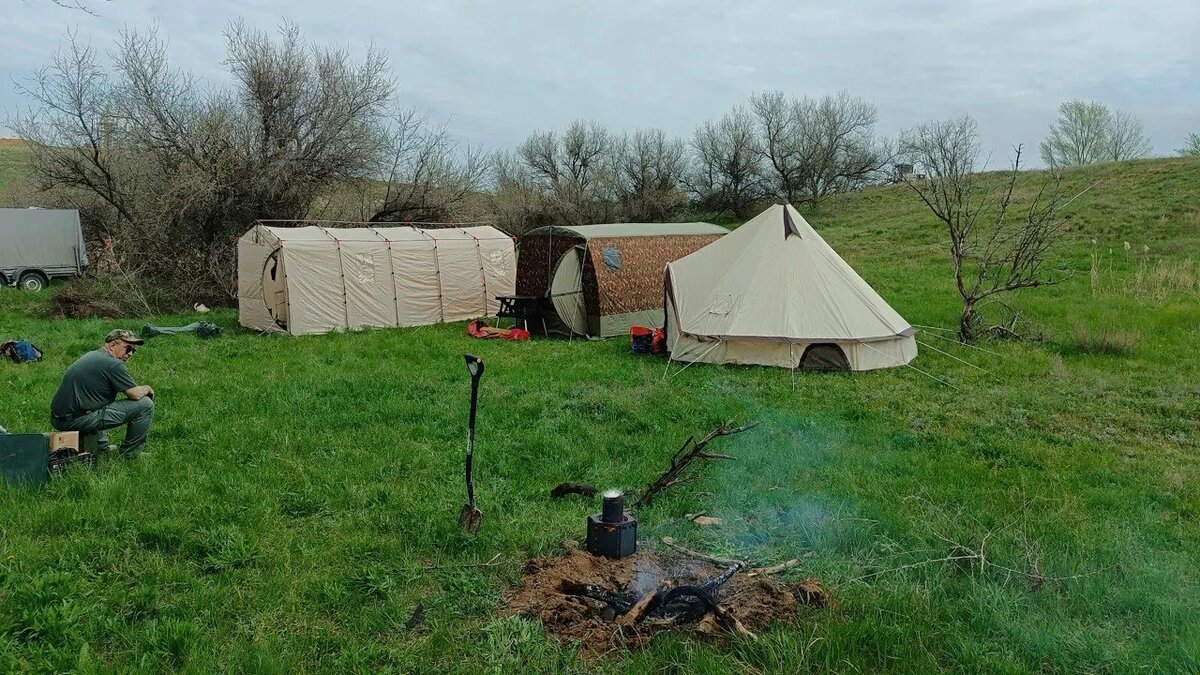 Представители шести муниципалитетов Ямала съезжаются в эти дни в Городищенский район Волгоградской области, где каждую весну в рамках Вахты памяти проходят поисковые работы. Отряд из Тазовского района прибыл на место раскопок первым. 24 апреля здесь ждут «Карские экспедиции» из Салехарда, а также поисковиков из Аксарки, Салемала, Нового Уренгоя и Надыма. 25 апреля приедут ребята из Волновахи. Мы по традиции отравились на вахту на автомобилях. Позади 4000 км. Окружающий мир постепенно менял краски — от белоснежных до цветущих, зеленых. Основной состав добирается самолетами и поездами. Сейчас наша задача — подготовить лагерь к приезду основной группы. Александр Шпилёвкомандир поискового отряда «Семидесятая весна», Тазовский район На термометре — непривычные для Ямала +20. В лагере уже установили палатку-кухню, обустроили столовую и баню — ее топят обычными дровами. В лагере есть электричество. Поисковики рассказали, что на завтрак успели приготовить себе яичницу с беконом и помидорами. О