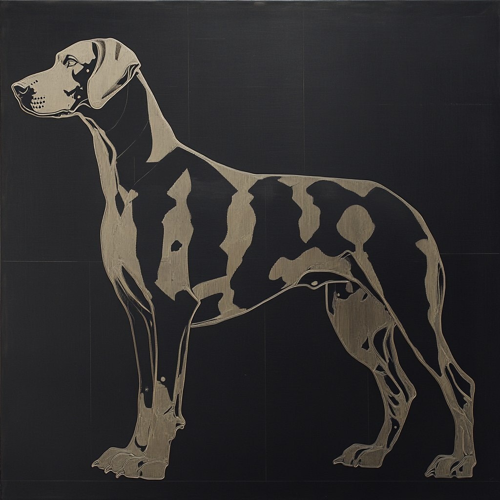 Создано на основе запроса: A great dane. The great dane is formed by geometrical steampunk pieces