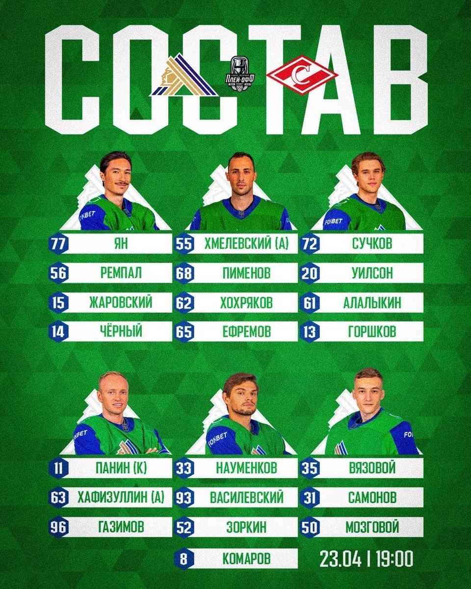 Известен состав «Салавата Юлаева» на игру со «Спартаком»