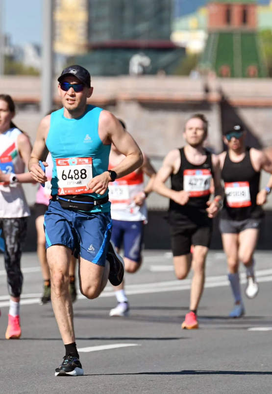 Евгений пришёл в бег, как и многие, «с дивана». В начале пути тренировался сам — и на первой же десятке чуть не сдох. Тогда понял: без тренера — никак. Нашёл специалиста, стал заниматься 5 раз в неделю, и результаты пошли вверх. Первый марафон пробежал за 3:10, потом результаты продолжили расти.