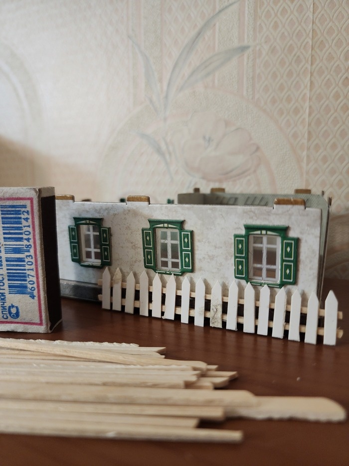 В общем сразу для понимания - ни я ни дочка моделированием или чем-то подобным не занимаемся, делали все в первый раз, иногда подсматривая в ютубе. Теперь история - задали дочке, 13 лет, еще в сентябре, тн годовой проект. Сделать своими руками замок, дворец, жилую постройку, детскую площадку, сельский дом с участком и тп из подножного корма, ээээ, того что бог послал и других подручных материалов. Сдать надо в мае. Ну мы, как водится, честно забыли, а потом оп - и два месяца осталось. Ну, думаем, возьмем что-нибудь полуготовое, глазки наведем и готово. Решили, что это будет сельский дом. На просторах нашли заготовку от "умной бумаги" и понеслась. Решили, что дом будет с забором, напилили поперечин из палочек для мороженого, настрогали штакета из плотного, но тонкого картона. Все маленькое, клеить не просто. Но, как нам показалось, легкая небрежность добавила антуража. Следы на дороге накатывали маленькой машинкой, очень жаль, что не смогли найти с протектором на колесах, было бы еще ин