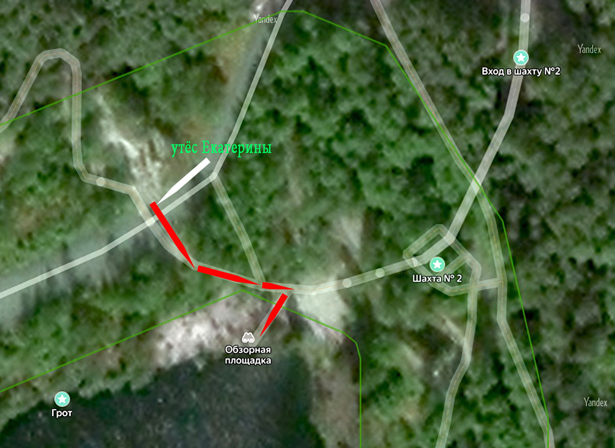 Уважаемые читатели, в предыдущей статье началась наша виртуальная экскурсия по горному парку «Рускеала», от автостоянки мы отправились в сторону обзорной площадки, расположенной в северной части «Главного карьера» и неподалёку от южного входа в штольню шахты №2. До площадки мы пока не дошли, остановившись около утёса Екатерины. В 2014 году утёс был таким же, как и в 2024-ом, только берёзки были помоложе. От утёса до обзорной площадки всего несколько десятков метров. С обзорной площадки открывается красивый вид на карьер. Мы находимся на северном борту карьера, справа – западный борт. Примерно тот же ракурс через 10 лет – утреннее освещение больше подходит для съёмки с этой точки. Рассмотрим панораму западного борта, представленную на предыдущем снимке, подробнее – с юга на север. У верхнего контура (это линия пересечения борта с верхней горизонтальной поверхностью), правее чёрного треугольного уступа, видна обзорная площадка. Севернее (чуть правее) на стене расположены вертикальные выс