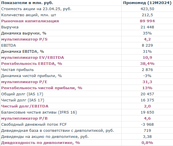 Почему инвесторов разочаровал отчет Промомеда за 2024 год? Где деньги? Дивдоходность, справедливая стоимость акций PRMD