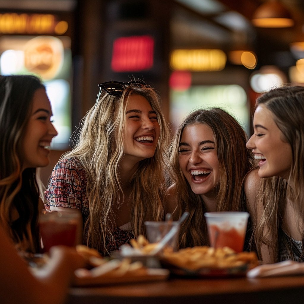 Создано на основе запроса: 4 young ladies at a Chili's restaurant laughing