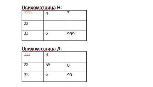 Для оценки сексуальной совместимости и духовной близости рассмотрим "плотскую" и "духовную" диагонали психоматриц.