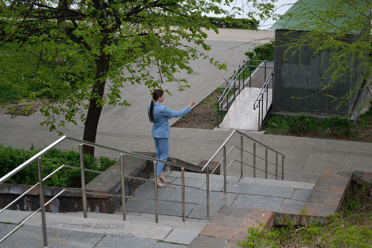 Хорошим был сегодняшний день. Добрым, красивым и ласковым. Когда появилось свободное время, отправился погулять на набережную. Именно старая её часть нравится мне больше всего. Роднее она, уютнее. Было приятно и удивительно, что со мной здороваются незнакомые люди. Точнее, может они мне и знакомые, но в солнцезащитных очках они обезличены. Сначала одна, затем другой... "Здравствуйте, Алексей!". Здравствуйте... Волга сегодня была спокойной, несмотря на небольшой ветер, на стайки воробьев и на любопытных ворон. Мимо неторопливо движутся саратовцы. Кто-то на велосипедах, другие с удочками в руках, со смартфонами или просто в задумчивости на лавочках сидят. Задумчивость была разлита в воздухе. Небо было обворожительным! А Волга просила меня передать приветы тем, кого она сегодня не увидит. Дорогие подписчики, вам привет от Волги! А затем по Князевскому взвозу вверх - у меня была назначена встреча с Лешей Марковым. В 13.00 мы должны были с ним встретиться в Мирном переулке. Правда, со вре
