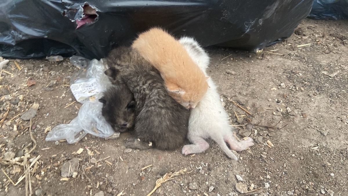 Богатство волонтера Рифы апы — новорожденные котятки из полиэтиленового грязного пакета.