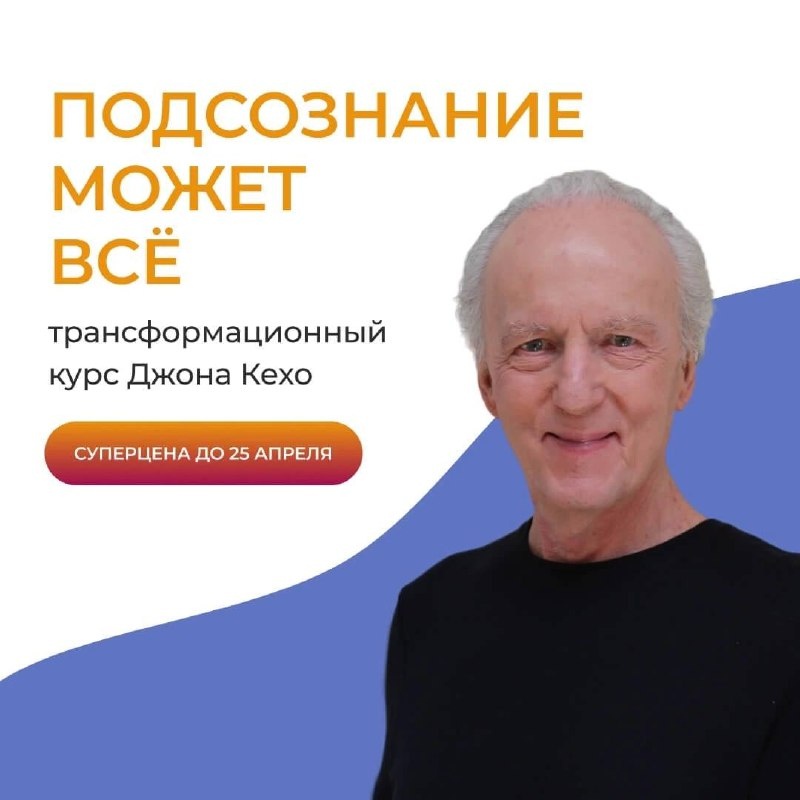 «Подсознание может всё», — и вы тоже. Если направите силу мыслей в нужную сторону ✨ Открыт набор на новый поток легендарного курса Джона Кехо и сейчас — самое лучшее время присоединиться. 🔥 Всего 2 дня — самая выгодная цена 25 апреля в 23:59 по Мск цена вырастет Этот курс — не просто теория. Это 50 лет опыта и изучения подсознания, собранных 6 недель практики, трансформаций и перемен. Уже больше 15 000 учеников по всему миру убедились: когда работаешь с подсознанием, меняется всё — мышление, поведение, отношения, результаты и сама жизнь. Что даст вам курс: 🧠 Настройку мышления на успех, изобилие и гармонию 🧠 Перепрограммирование ограничивающих установок 🧠 Техники работы с подсознанием, которые работают 🧠 Пошаговую систему от самого Джона Кехо 🧠 Поддержку и вдохновение на каждом этапе пути 📅 Старт: 26 мая 💻 Формат: онлайн, новые уроки каждую неделю 🎓 Автор: Джон Кехо, мировой эксперт работе с подсознанием 🎯 Потоки проходят только раз в 2 месяца, а цена вырастет совсем ск