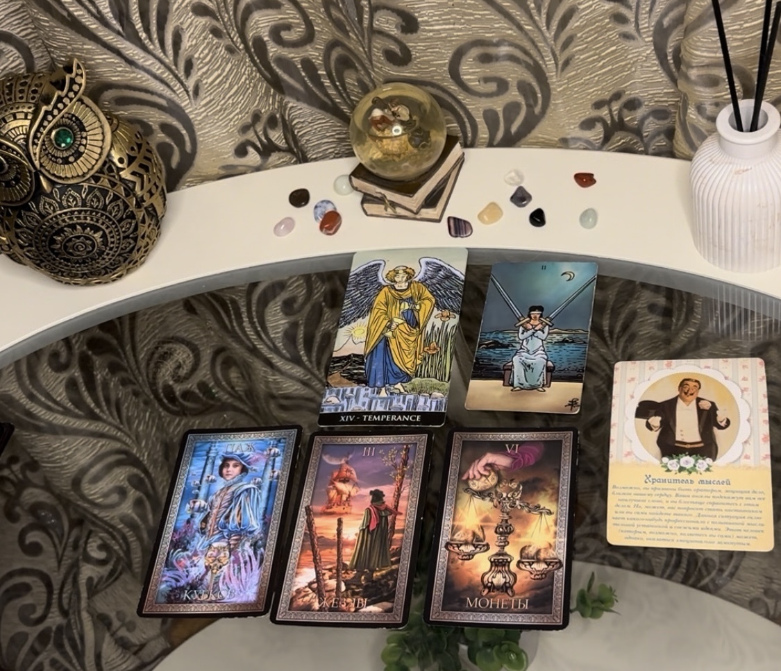 • Я Вивьен, приветствую Раков и представляю таро прогноз на период с 1 по 15 мая 2025 года. • Первая карта, старший аркан - "Умеренность" (это ключевые события загаданного периода). • Карта символизирует счастье, исполнение желаний и неторопливость. • Карта "Умеренность" указывает на постепенное исполнение желаний, и отсутствие препятствий для достижения Ваших целей. • Важно сохранять баланс между работой и личной жизнью. • Карта связана с планетой Юпитер, символизирующей большое счастье и подарки. Следующие три карты: • Карты "Паж кубков", "Тройка жезлов" и "Шестерка пентаклей" указывают на счастливые эмоции, успех и финансовую прибыль. • Возможны новости, предложения по работе и новые знакомства. • Вас ждет движение вперед, повышение по службе, поездки и путешествия. • Возможны перемены на работе, новые возможности, получение денег и финансовая стабильность. Здоровье: • Карта "Двойка мечей" предупреждает о проблемах со зрением (возможно операция на глаза) и сердцем. Важно заботиться