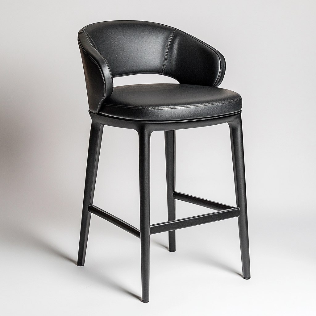 Создано на основе запроса: modern black leather seating barstool, white background studio