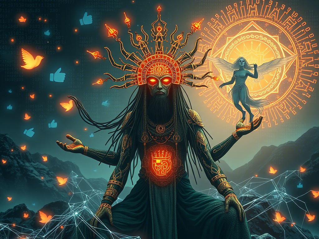 «Цифровой Нагваль: Как архетипы древности правят алгоритмами и нашими лайками» Почему, листая ленту Telegram, мы встречаем тех же богов, что и в мифах? Как темнота deep web становится современной Навью, а соцсети — новыми капищами? Путешествие в сердце цифровой реальности, где древние паттерны обретают коды и пиксели. Пролог: Когда боги оделись в алгоритмы Представьте Одина, который вместо ворона Хугина запустил нейросеть. Или Афину, создающую мемы вместо щитов. Архетипы не умерли — они мимикрировали. Цифровой мир — это джунгли, где бродят те же тени, что и в мифах. Только вместо факелов — экраны. Глава 1. Архетипы: Вечный код человечества Юнг vs. Илон Маск: Кто кого? — Трикстер (Локи/Хакер): В древности — плут, взламывающий границы миров. Сегодня — анонимный разработчик, взламывающий блокчейн. — Герой (Геракл/Стартапер): Раньше побеждал гидру, теперь — конкуренцию на рынке. Его «12 подвигов» — этапы стартапа. — Мать (Деметра/Искусственный интеллект): Даёт жизнь (данным), кормит (инфо