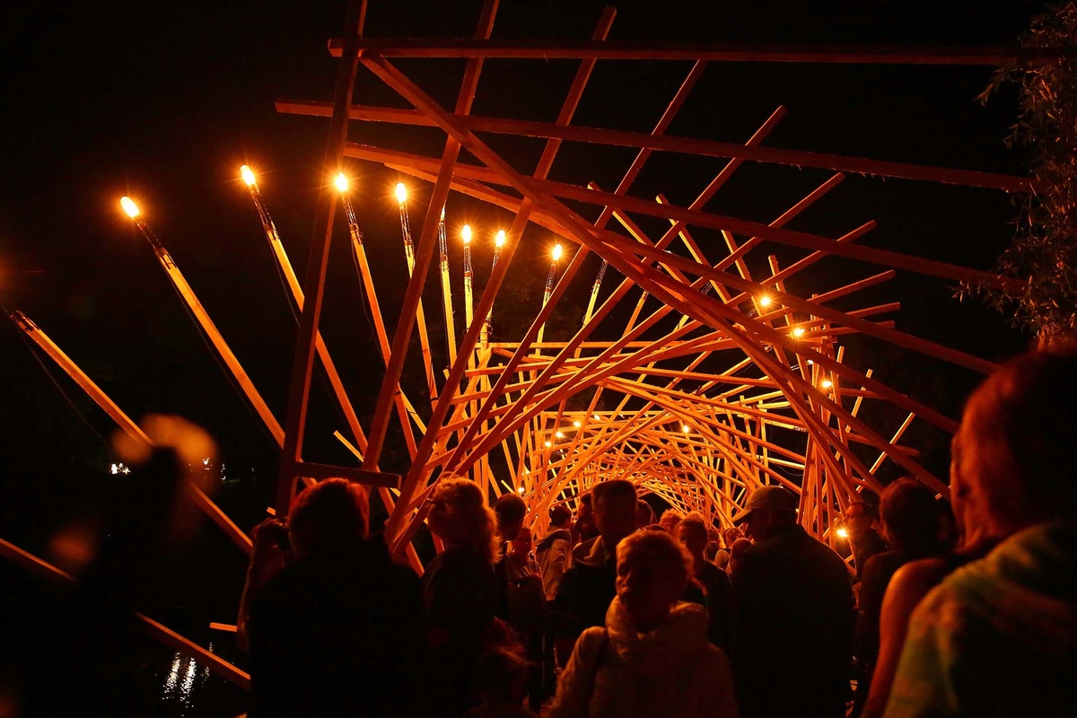 Что: Бюро несколько раз участвовало в Гатчинской ночи света, но именно в 2019 году, когда темой фестиваля была вода, оно представило свою главную работу «Однажды ночью под мостом».