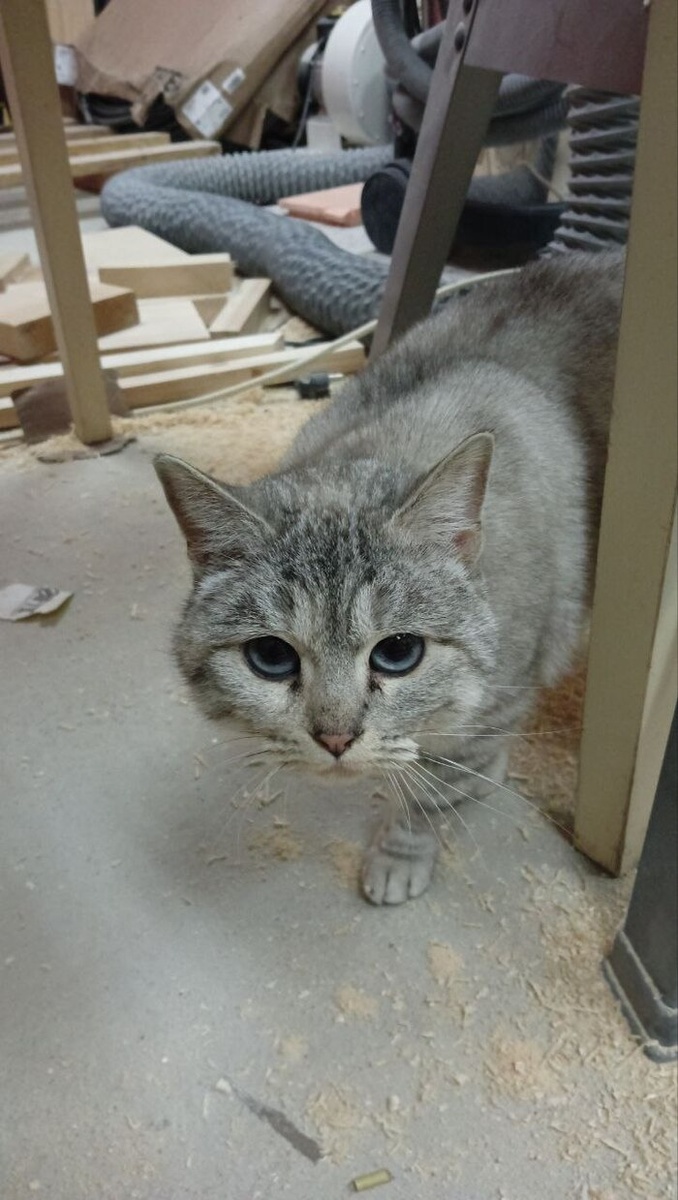 Зимой приблудилась на участок кошечка. Мы сперва думали, что это чья-то соседская забегает, но через пару недель выяснилось, что она у нас под бытовкой живёт. Видать, когда совсем оголодала, осмелела и вышла к нам, сожрала пару сосисок и опять спряталась под бытовкой. Хоть с виду и домашняя, даже на породистую похожа, что-то типа шотландской прямоухой, но очень пугливая и к себе не подпускала. Стали её подкармливать, жалко ж животинку. Параллельно искали её хозяев, но никто так и не откликнулся ни в нашем посёлке, ни в соседних. А тут и морозы ударили и как-то вечером кошечка проскользнула в дом. Ну что ж, значит она нас выбрала. Пару недель в нашем доме жила кошка Шрёдингера - она есть, но её нет, т.к. пряталась и выходила только покушать и в туалет. И то только по ночам. Догадки, что домашняя, подтвердились тем, что кошка справляла свои дела исключительно сперва в тазик с песком, а потом и в лоток. Позже уже осмелела, стала показываться когда клала ей еду, но стоило сделать шаг в её