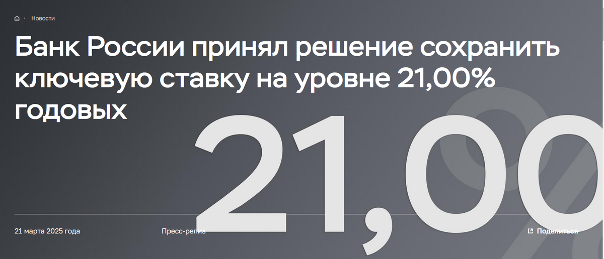 На предыдущем заседании ? 21.93.2025 Банк России оставил ставку неизменной: