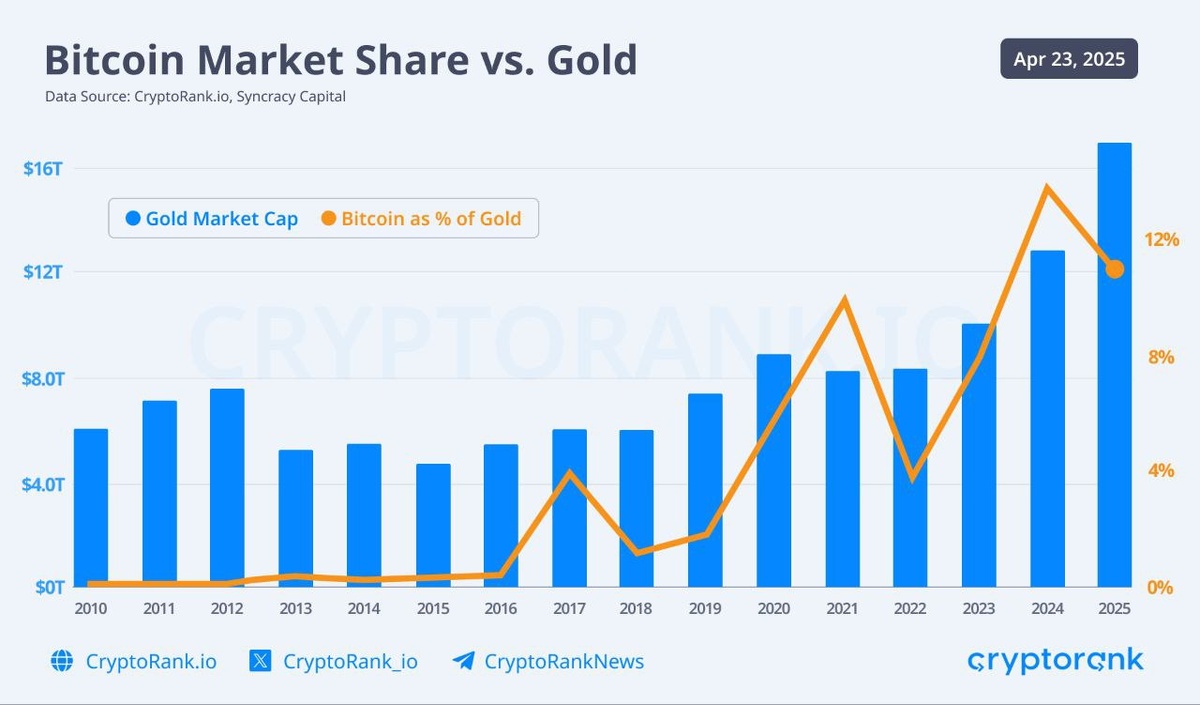 #BTC Bitcoin это всего лишь 11% от рынка золота Gold 🏆